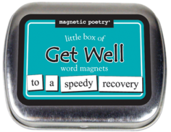 A cute little tin filled with words that encourage healing. As a gift, a nice little token that won't soon be forgotten. Contains 72 themed magnetic word tiles, packaged in a shrink-wrapped tin container. Individual tiles are .375" tall. Product size is 1.75h x 2.25w x 5"d. Made in USA. |